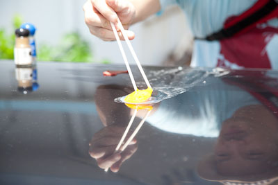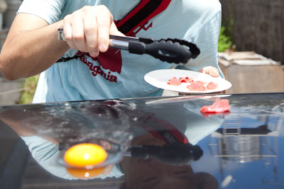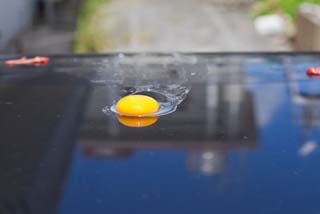 真夏の昼下がり。子どものころから思っていた謎が解明できた気がする。 車のボンネットやルーフでは目玉焼きは作れないと。 しかし、小道具を使えば(レフ板や虫眼鏡など)薄い食材は焼けるはずだ。