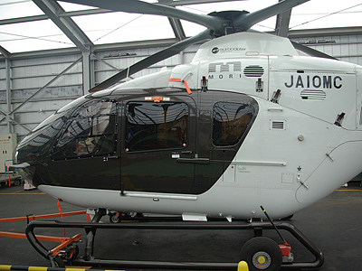 このレガシィごとヘリに乗るのは絶対不可能というわけで、我々の前の回の搭乗が始まらないうちに、撮影だけ済ませようということに。しかも他のお客様の目に触れないように、サッとヒットアンドアウェイでやってくださいとのこと。そしてヘリは離れた場所でもプロペラの風圧がすごいので、ダンボールの扱いには注意してくださいと、我々の行動においてすべてが心配そうな担当者の方だ。同情する。