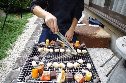麩に染み込んだ水が、時折ジュウと音を立てます。