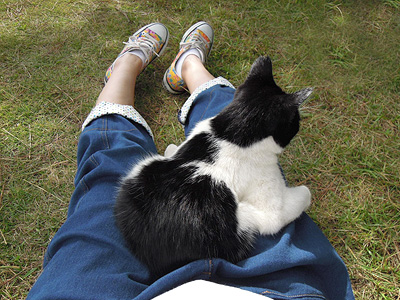 ランちゃんはだいぶ大人の猫だ。落ち着いているのが幸いして、じゃれる事はなかったが、動いている時にのせるのは難しかった。 しかししばらくすると、日向ぼっこでうとうとし始めた。これはチャンスだ、のせてしまえ。