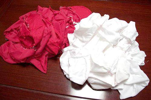 赤白帽そのままの形では、服に加工するのは難しいと考えました。