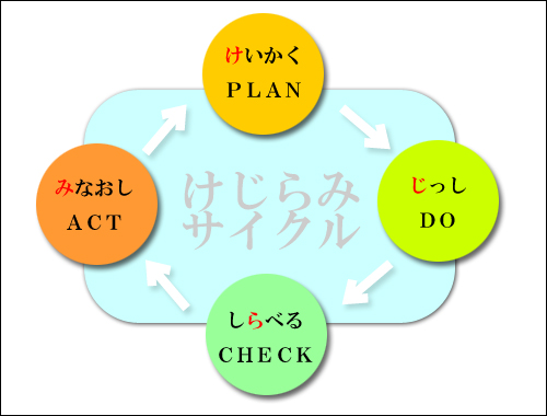 さらに「ずるやすみに使ういいわけ」標語、「PDCAを分かりやすく日本語に言い換える」標語を制定した。
