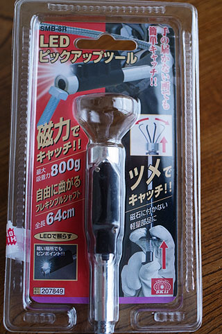 もうひとつは今回のツールと同じ隙間に落ちた物を拾う用の道具だったが、ツメはなく磁力のみ。なので箸や歯ブラシが拾えない。また長さが40cmくらいと微妙に役に立たなかった。