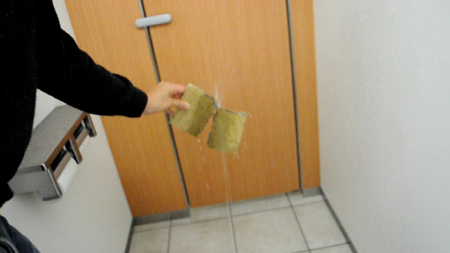 ペーパータオルはいとも簡単に切れた。画像からも分かる通り、噴射口から結構離れてこの威力。ほぼゼロ距離で受けるとなると一体どうなってしまうのか…。