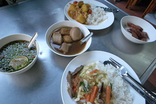 しかしそれは杞憂で、タクシーを降りるとすでに町のいたるところから美味しそうな匂いがしていた。開いているのだ、お店。夜の続きじゃなく朝が早いのだ、タイは。