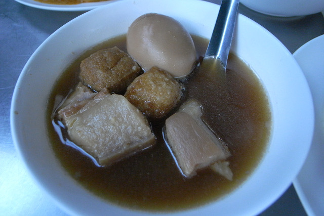 豚の角煮みたいな食べ物。甘辛く味の染みた揚げ豆腐みたいな何かがすごくおいしい。