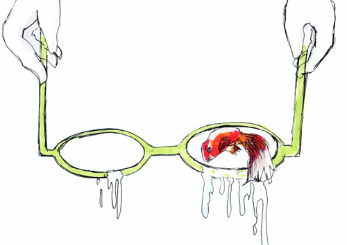 金魚すくいのポイにレンズが入っているイメージ。