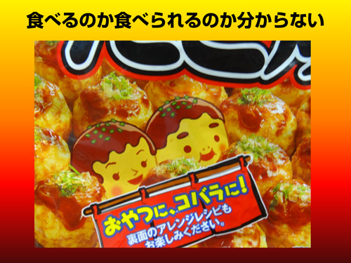 メインターゲットの子どもたちのイラストだと思ったんですが、青のりかけられてるので食べられるたこ焼きを擬人化したのかもしれない。食べるということは命をいただくということを伝えています。