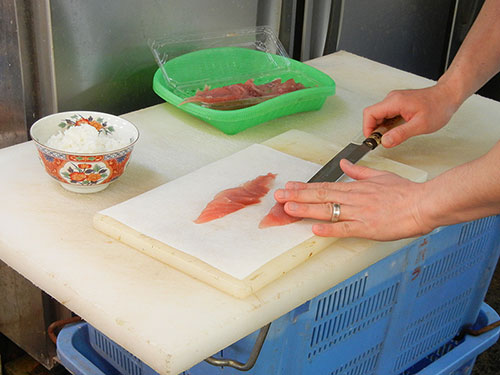刺身用に出してたマグロを更に切ってもらい、どんぶりに乗せてもらう。