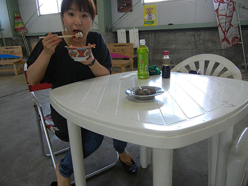 美味い!!エビとかプリプリだ!ご飯、せっかく温かかったのに持ち歩きすぎたなー、、と思いつつもバクバク食べていると…