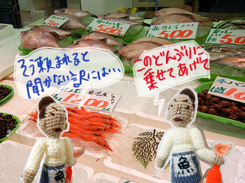 突然「なにかを買ってもらって、その一部をどんぶりに乗せることならできる」という思いがけない展開に。やった!やってもらえる!