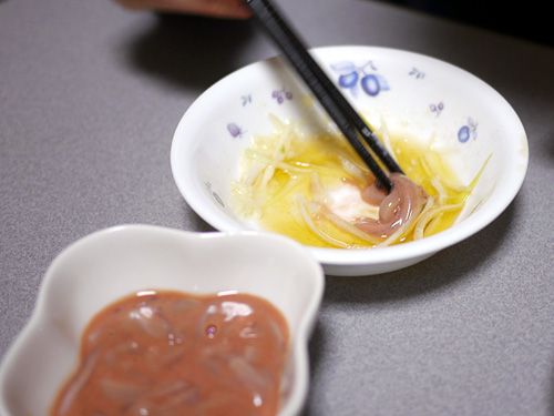 イカの塩辛については、「苦味(?)がちょっと似てるんじゃないか」という助言があり、試してみたが…