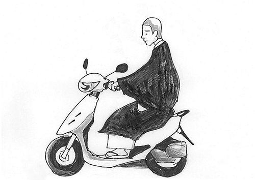 しかし、スクーターに乗っていお坊さんには、どこか違和感を感じるのです。