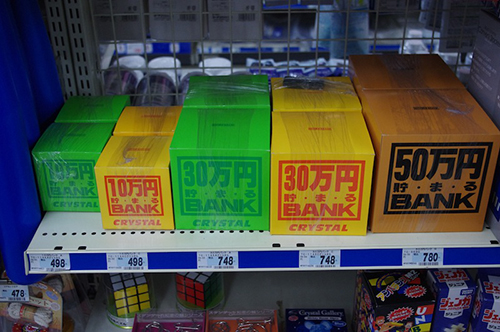 参考にするために、ホームセンターに「◯円 貯?ま?る」シリーズの貯金箱を買いにいった。