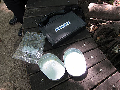 一方われらがショルダーiPhoneは、計ってみると1キロちょっと。当時の電話を追体験すべく、こちらも3キロのおもりを課してみることにした。 |