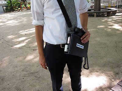 調べてみると、本家のショルダーフォンも、筐体の中身はほとんどバッテリだったそうである。当時の持続時間はそれでやっと8時間なのだが、いまでは電話の消費電力も当時より少ないし、バッテリの性能も上がっているだろう。この筐体いっぱいに充電器を詰めておけば、相当長持ちするはずである。