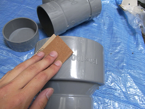 塗料の食い込みがいいように、紙ヤスリでパイプをやする。