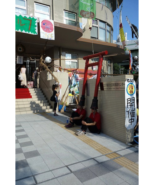 仕方がないので、壁に鳥居をもたれかけさせて、重量を分散させる。