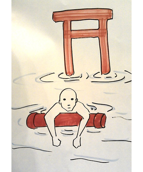 あわや一大事という状況だったが、解体した鳥居を「浮き」として活用し、難を逃れることができた。