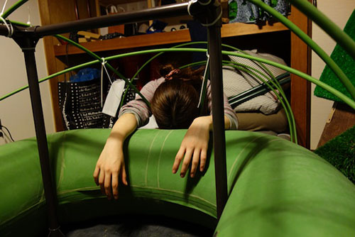 作業を手伝いにきてくれた同僚は、疲れ果てて貞子みたいな体勢で作業の最中に眠りに落ちていた。