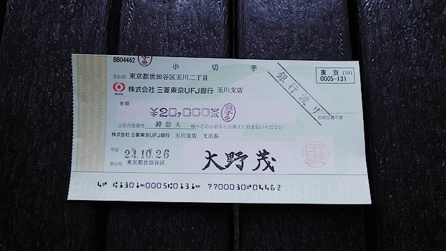 小切手で始まる金持ちライフ 2012年11月3日公開 ライター:地主恵亮