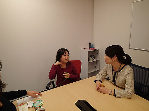 社長と一緒にランチ。これは働いている女性のイメージにぴったりだ。食事をしながらミーティングをするのだ。この日もミーティングは行われ、この後のスケジュールが決まった。スイーツの開発である。ニフティの運営する東京カルチャーカルチャー(以後、カルカル)というイベント施設で本当に提供するスイーツを開発するのだ。