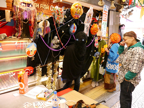 今回のお祭りでは、黒いクジャクのような格好だった。