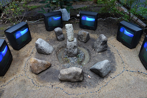 漬け物石を借りてきて、ストーンサークルを作っておられた。