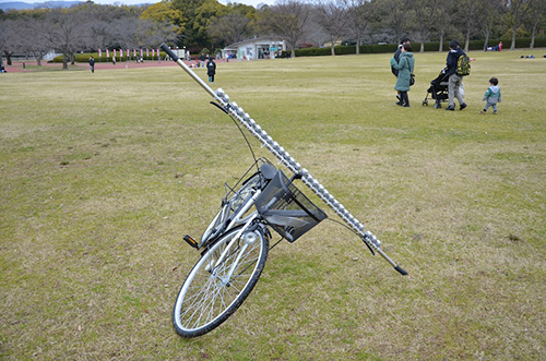 スタンドがなくても、ハンドルで自転車を立てることができる。