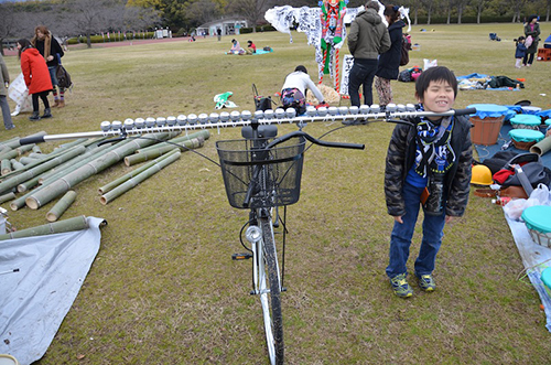 置いているだけで、いろんな人がまたがり、嬉しそうにチリンチリンを鳴らしていく。