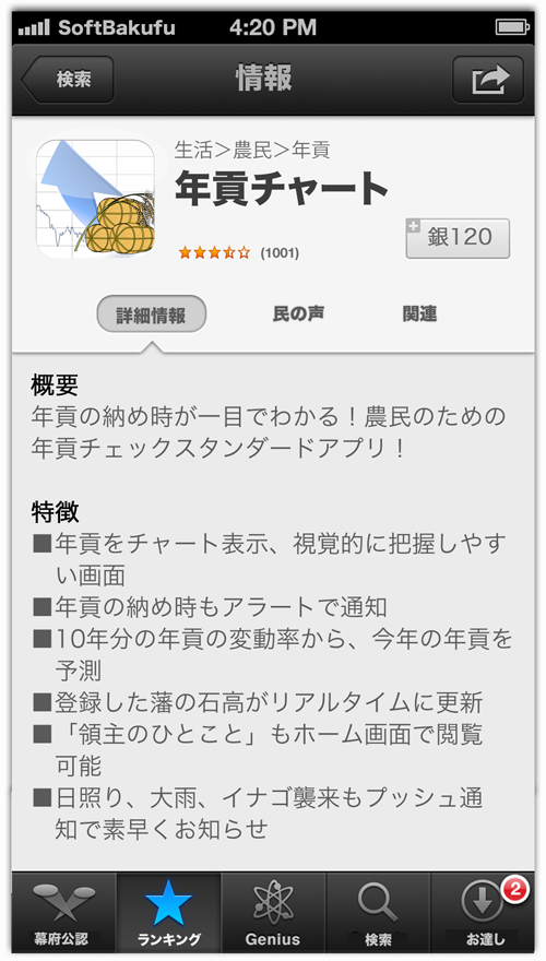 “年貢に関しては最強のアプリである。新たなる年貢体験を貴方に。