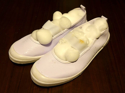 上履きに謎の汚れが見える。
