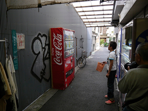 屋外では常に動き回っていないと普通の自販機にしか見えない。
