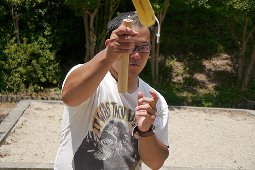 振り回していると、きれいな放物線を描いて飛んで行った。