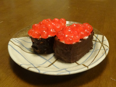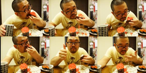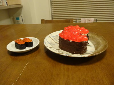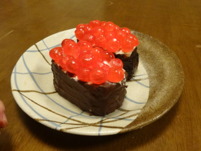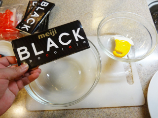 ちなみにできるだけ黒いチョコレートだと海苔に見えると思ってBLACKって書いてあるチョコを買ってきたけど、 開けてみたら普通の茶色でした。