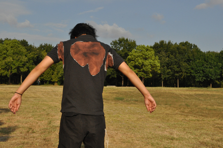 背中は更に大けがっぽい。前面のようにギザギザじゃなく自然な感じの形がよりリアルだ。左腕なんて取れちゃいそう。