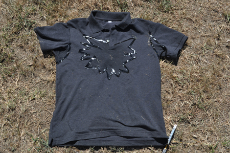 濡れた部分をテープでマーキングする。この部分さえカバー出来れば汗で濡れた部分が見えることは無いのだ。