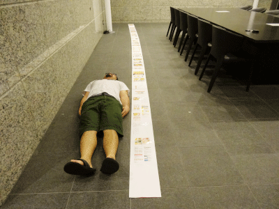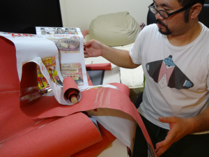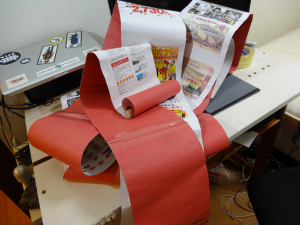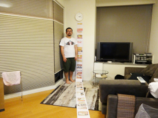 7m66cmでした。 ちょうど165cmの僕4人と半分ぐらいでしょうかね。 さて、ここから巻物化します。
