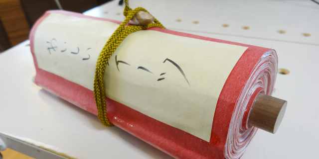 この想いをどうにか可視化できないだろうか? アドバルーン?ビルの垂れ幕広告?と、余計な事を考えはじめて次に思いついたのが巻物でした。