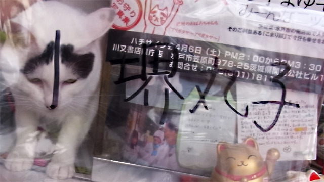 三戸の猫、八ちゃんの記事はその額の柄を借りて「よし、では私の名前を縁起よくしよう!」と思いついたことに心打たれました。しかも使うのは透明な板。やっている状況を写真で見るまで何がなにやらです。