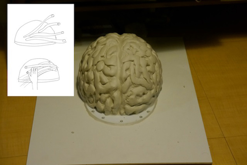 手で頭蓋骨による脳の圧迫具合を再現するわけだ。