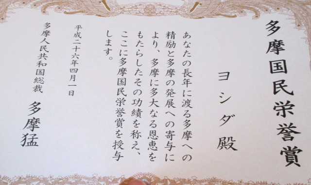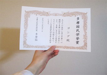 多摩の発展に顕著な業績をもたらした人にのみ贈られる