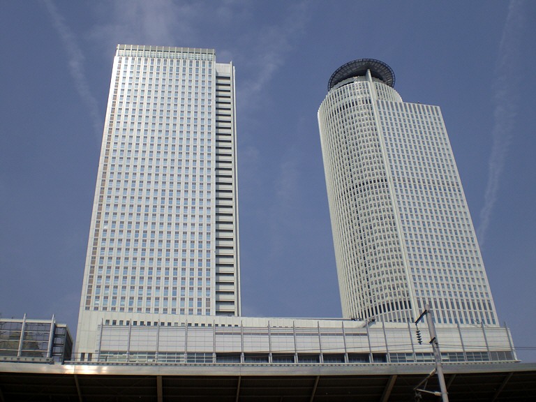 名古屋駅の上に乗っている「JRツインタワーズ」です。 …というのも、空が青いから。