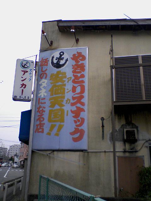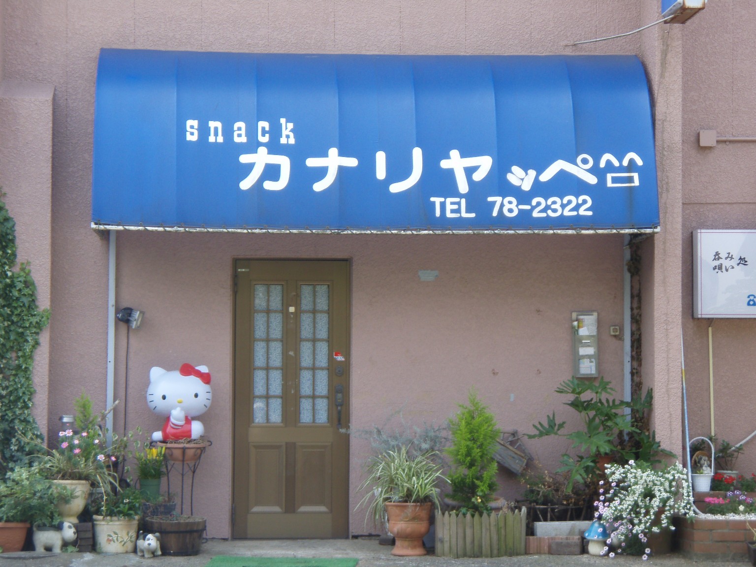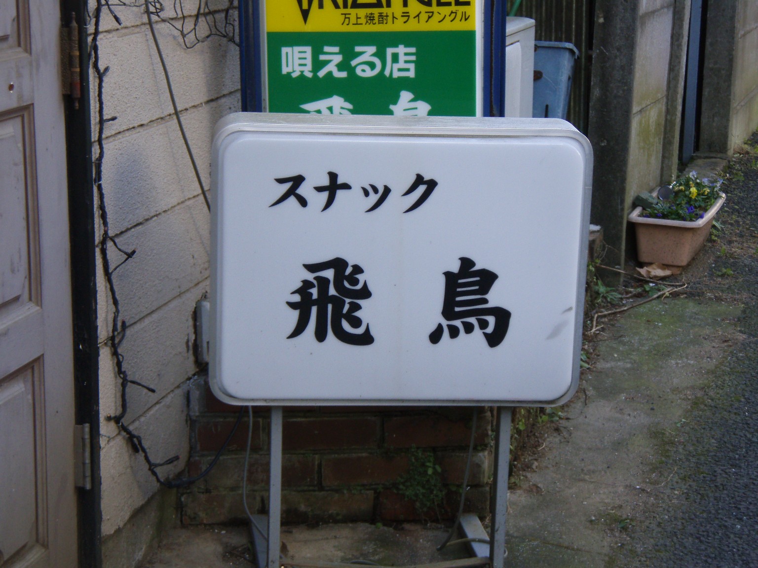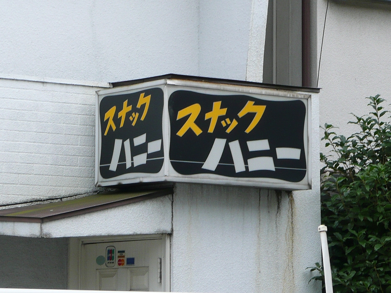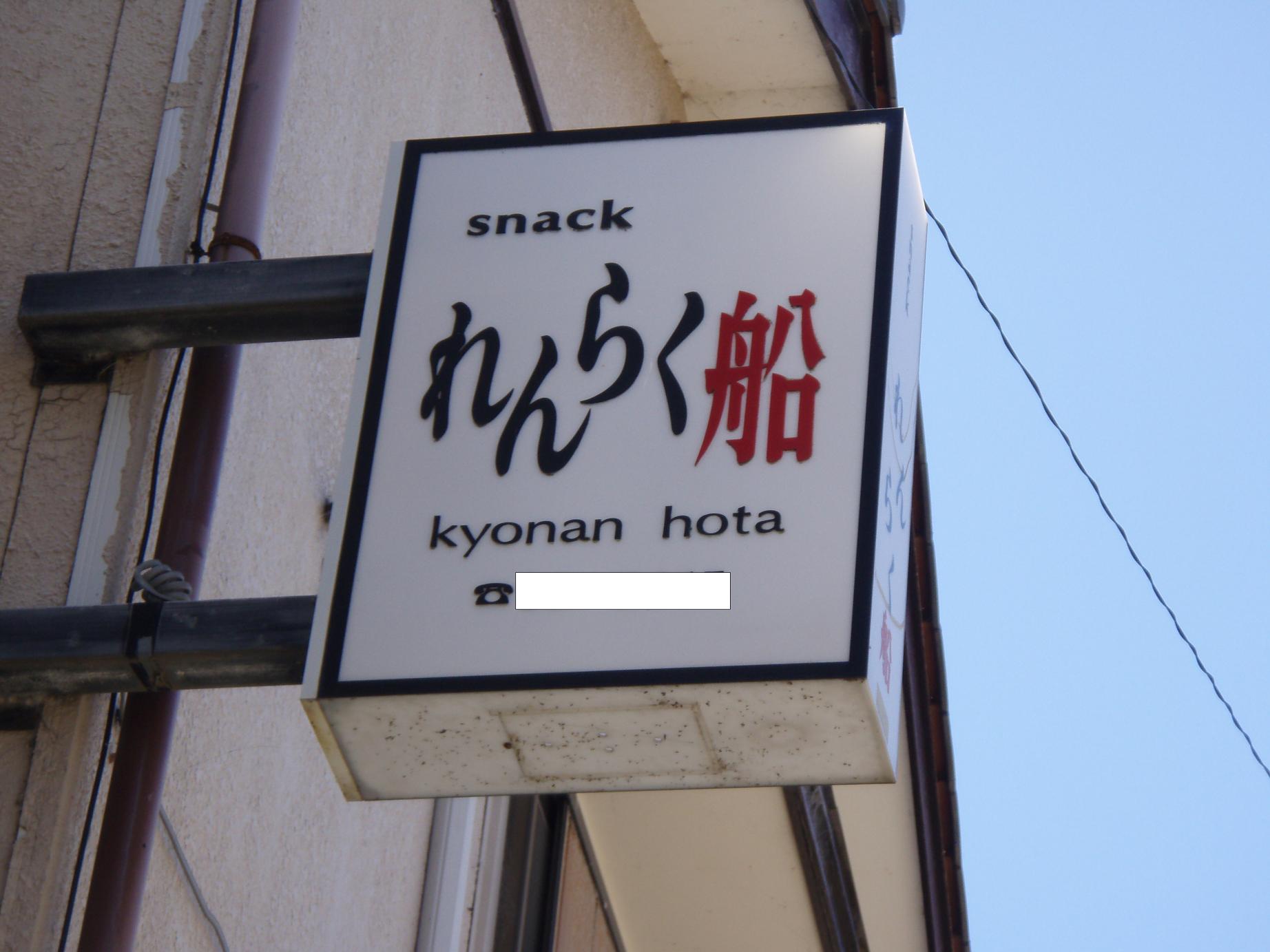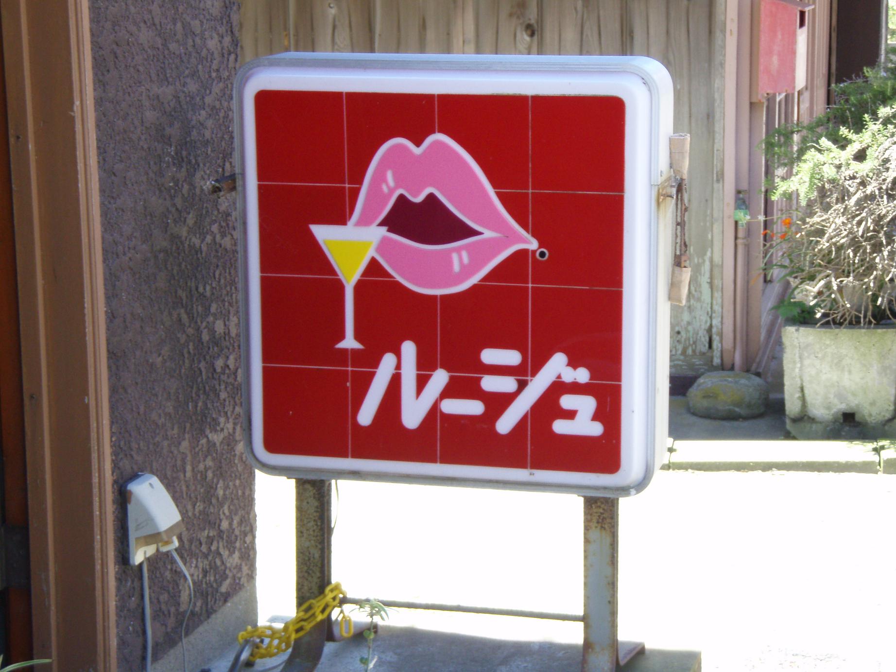 3年ほど前に旅行に行った際に見つけました。 漢字1文字で5文字分読ませるのか!と思って撮った記憶があります。昼間だったのでお店自体は閉まってましたが、看板の色がスナックっぽくないですね。