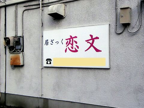 以前お花見に行った帰りに見つけたお店です。 名前は「恋文(こいぶみ)」と普通ですが、 ‘居ざっく’というスタイルにグッときました。 居酒屋とスナックが一緒になった感じなんでしょうか。 ちなみに外観はスナックぽかったです。