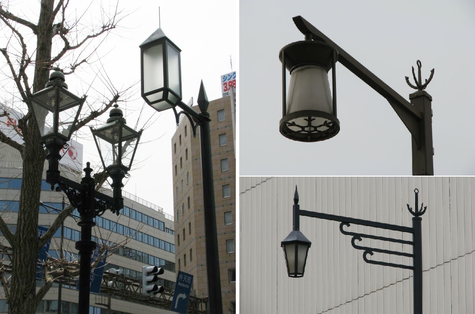新潟市は街灯に力を入れている(?)ようで、特に新潟駅前から古町ではいろいろな種類を見ることができます。