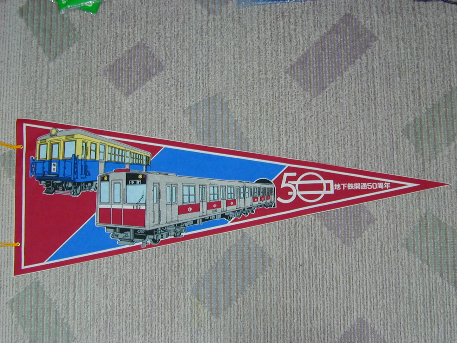 大阪市営地下鉄開業50周年のペナントです。 大阪市営地下鉄は、1933年(昭和8年)に梅田〜心斎橋間が開業してますから、このペナントは1983年(昭和58年)の品物っつーことになりますね。