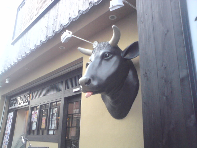 今月、成田山に遊びに行った帰りに見つけた牛のフィギュア(?)の看板(?)です。 思わず写真を撮ってしまいました。