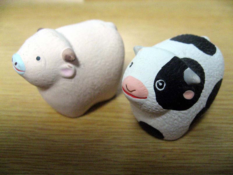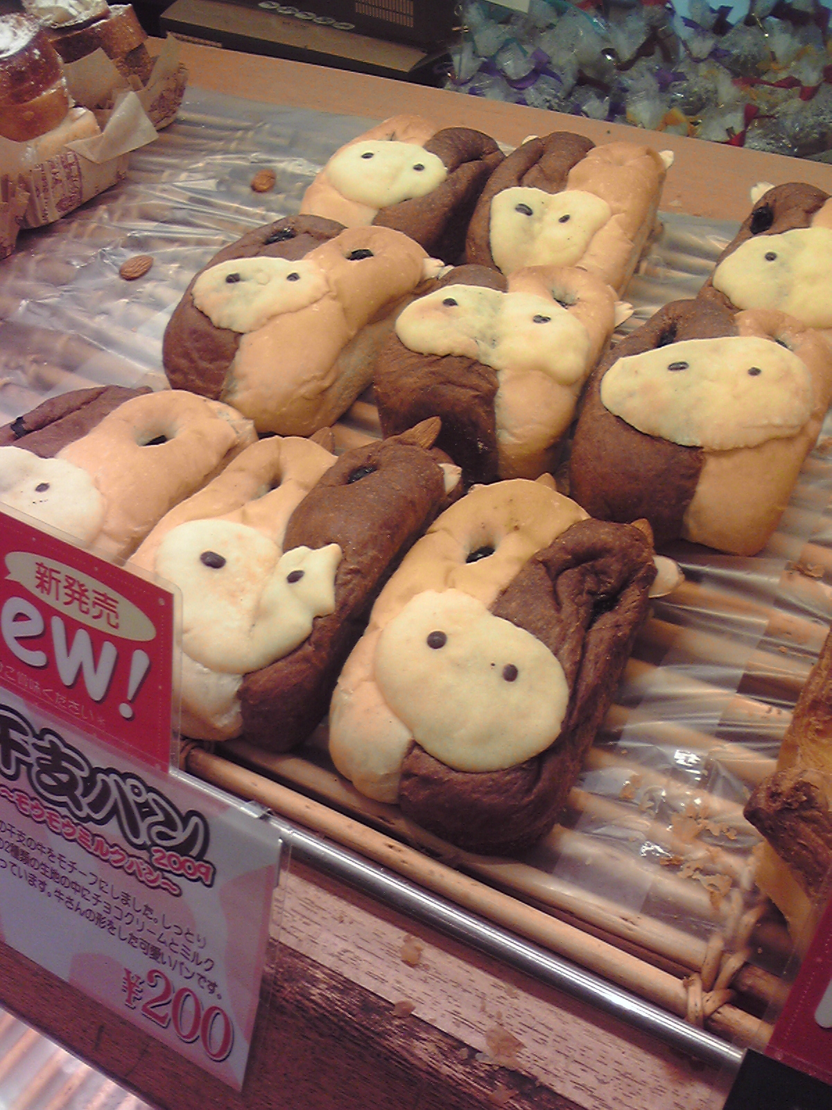 12/31に京都駅のパン屋さんで見つけたウシさんです 右下のちょっとくずれ顔のウシさんは頂きました