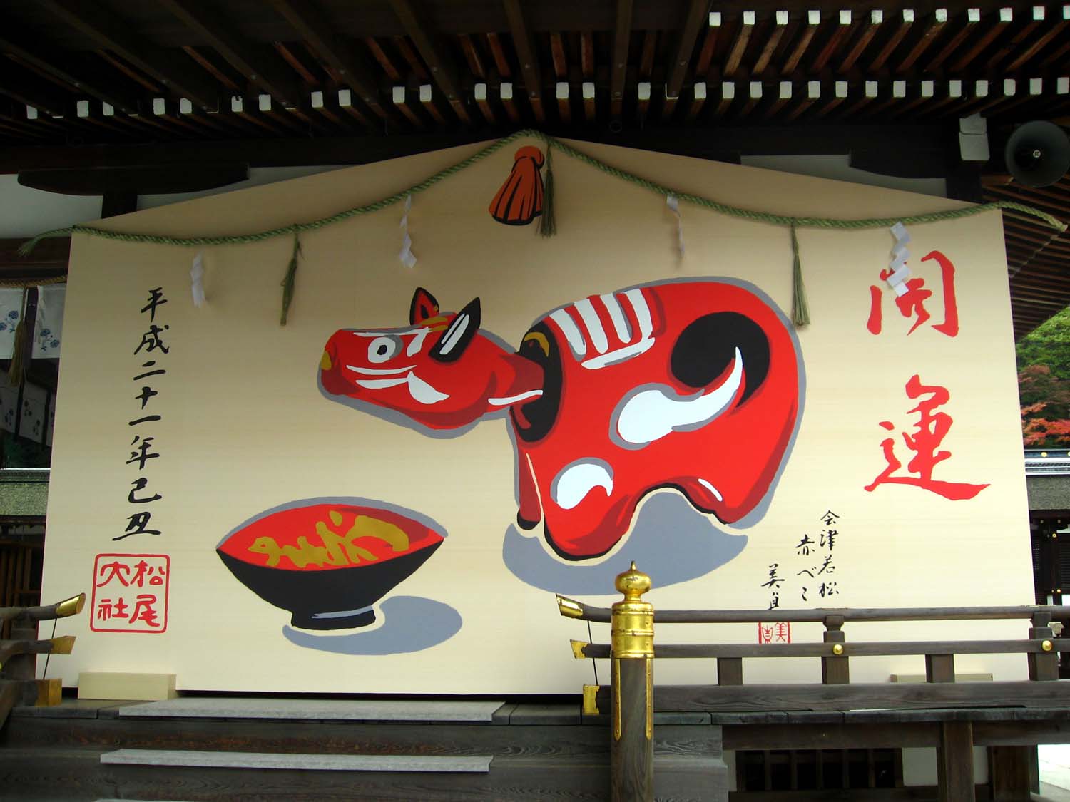松尾大社(京都市西京区)で毎年この時期に、来年の干支を描いた大絵馬が飾られます。神社の絵馬で、ご利益があるのだとか。